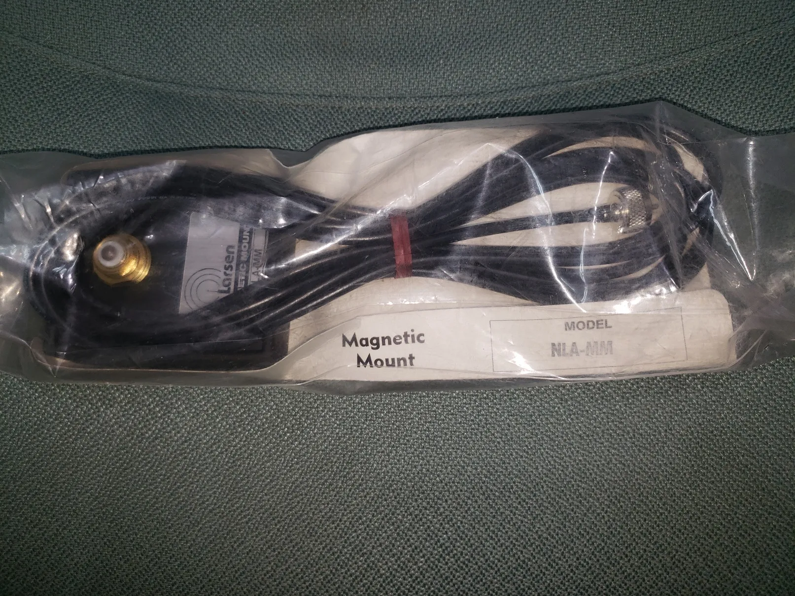 he Larsen NMO MMR magnetic antenna mount is for use with Motorola-style, NMO antennas. This Motorola-style magnet mount provides temporary, easily removable mounts for mobile antennas. This high frequency, 0 - 3000 MHz. NMO mount features a fully weatherized cable interface and a center pin that is removable to convert it from a standard frequency mount to a high frequency mount. The mobile antenna mount is constructed from a zinc alloy body plated with copper and nickel.The vehicle mount thread size is 1-1/8 inch -18. The Larsen vehicle magnetic mount for Motorola-style antennas includes 12 feet of RG58A/U cable. UHF male connector is installed. Thread Size: 1-1/8"-18. Frequency: 0-3000 MHz. Color: Black. Connector: UHF crimp, installed. Cable Type: RG58A/U. Cable Length: 12 feet.